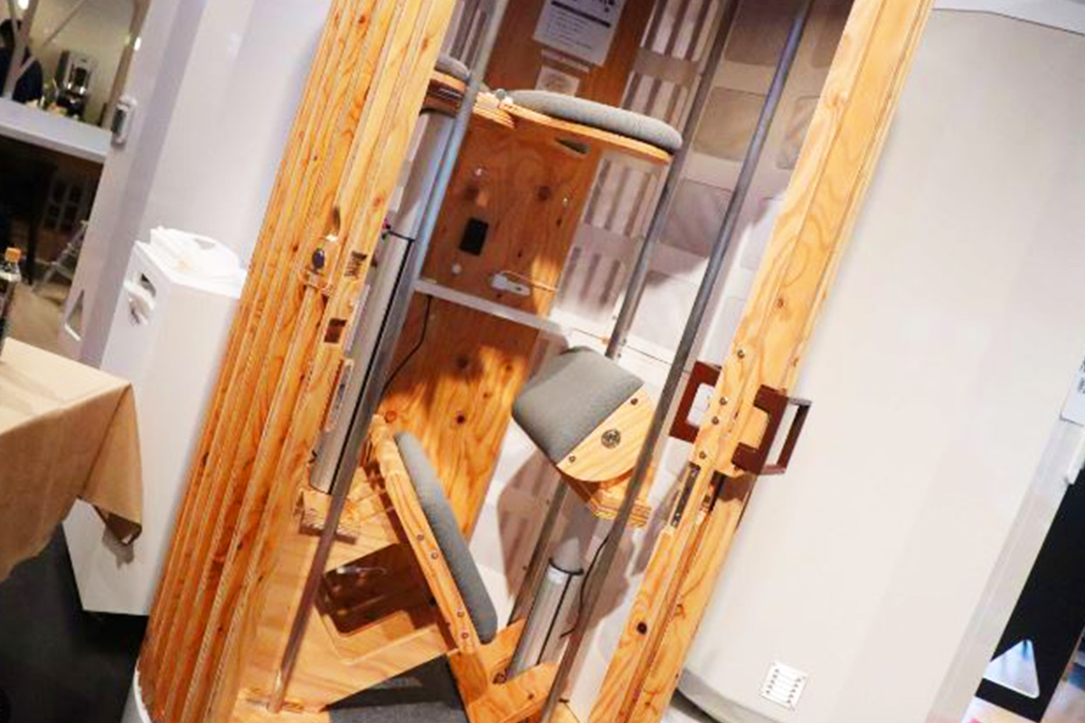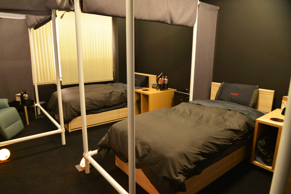 수면 캡슐은 일본의 ‘지라프냅(Giraffenap)’에서 개발한 것으로 내부에는 팔, 무릎 패드가 있는 수직형 좌석과 함께 환기장치, 전기 콘센트, 디밍 조명 등으로 이루어졌습니다.