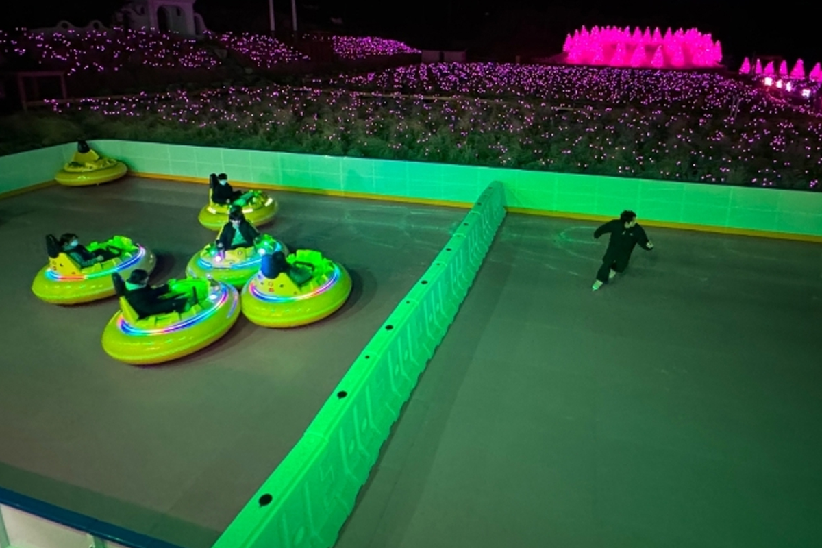 호수 위에서 타는 얼음 썰매와 세발자전거, 러버덕 기차 등 다양하게 마련되어 있습니다.
