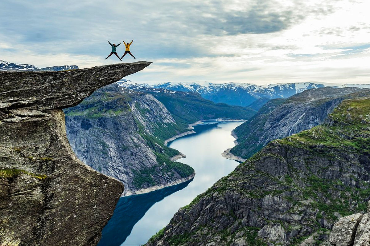 노르웨이의 ‘트롤퉁가(Trolltunga)’는 절벽 위로 길게 튀어나온 바위입니다.
