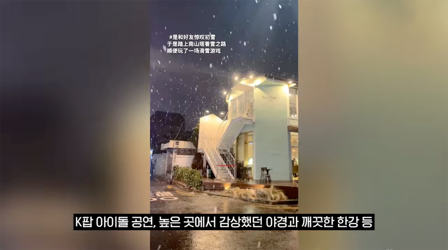 최근 한 중국인 여성은 한국 여행을 마치고 귀국길에 오르던 지하철 안에서 눈물을 흘려 화제가 됐다. 도우인(抖音·중국판 틱톡)에는 한국의 눈 덮인 골목길을 담은 단 8초짜리 영상이 올라와 334만 개의 ‘좋아요’와 5만 개의 댓글을 기록했다. “서울은 사랑으로 태어난 도시”, “작년에 한국 떠날 때 비행기에서 울었다”, “만나는 사람마다 선의로 가득 차 있다” 등 댓글들은 한국을 향한 중국 젊은 세대의 감정을 보여준다.