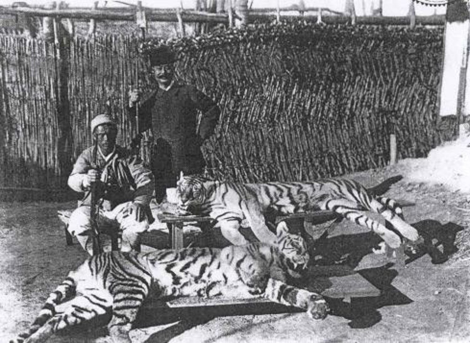 사살된 호랑이와 우측이 야마모토 타다사부로, 좌측은 최순원. – 출처: 나무위키