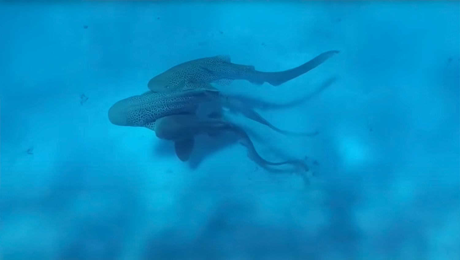 뉴칼레도니아 바다 한복판에서 전 세계 과학계를 뒤흔들 장면이 포착됐다. 호주 선샤인코스트 대학교의 한 교수가 단순한 스노클링 조사를 하던 중, 지금껏 누구도 기록하지 못한 장면을 마주한 것이다. 세 마리의 야생 표범상어가 동시에 짝짓기에 돌입하는 순간이었다. 단 110초 동안 이어진 이 장면은 인간이 바다 깊숙한 곳에서 절대 볼 수 없다고 여겨졌던 영역을 드러냈다.