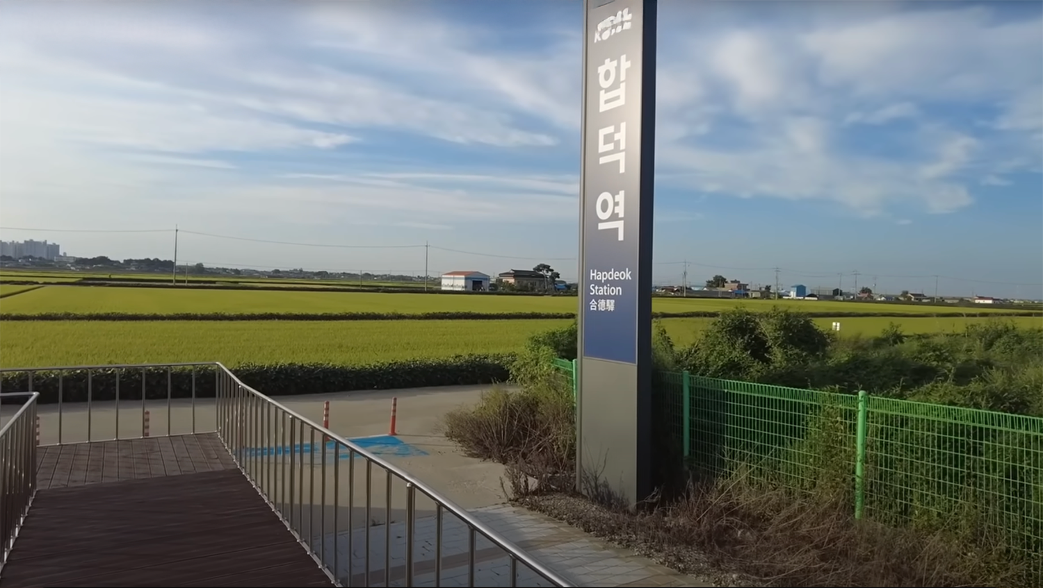 시골 논밭 한가운데 덩그러니 서 있는 합덕역사(출처 : 강호의발바닥TV 유튜브채널 캡쳐)