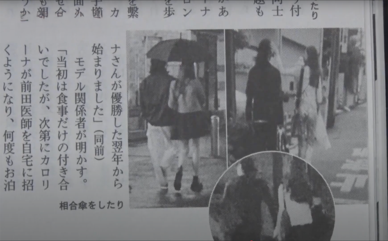 주간지 보도에 따르면 시노는 3년 가까이 19살 연상의 유부남과 불륜 관계를 이어왔다. 상대는 일본 내 유명 뷰티 클리닉을 운영하는 근육질 의사 마에다 다쿠마. 아내와 아들까지 있는 인물이었다. 처음엔 마에다가 자신을 ‘돌싱’으로 소개했다고 했지만, 문제는 그가 유부남이라는 사실을 알고도 그녀가 만남을 이어갔다는 정황이 드러났다.