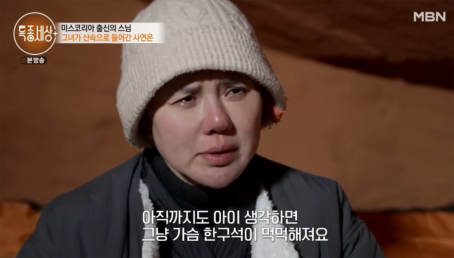 1994년 미스코리아 인천 ‘선’에 당선되며 화려한 스포트라이트를 받았던 한 여인이 세속의 삶을 등지고 스님의 길을 걷고 있다. MBN ‘특종세상’은 3년 전 계룡산 해발 800m 산등성이의 바위굴에서 홀로 수행 중인 보타 스님(법명)의 기구한 사연을 공개했다.