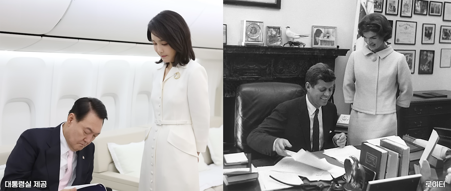 문제의 시작은 첫 순방인 스페인에서였다. 대통령이 호텔에서 원격 결재를 하는 장면이 ‘빈 화면’으로 배포된 것이다. 플리커 현상 때문에 문서가 순간적으로 안 찍힌 기술적 문제였지만, 외부에는 ‘빈 문서 결재’로 비쳤다. 이후 사진 통제는 급격히 강화됐고, 모든 컷은 ‘여사 부속라인’의 컨펌을 거쳐야 했다. 그 결과, 대통령 사진은 줄고 영부인 사진은 늘었다.