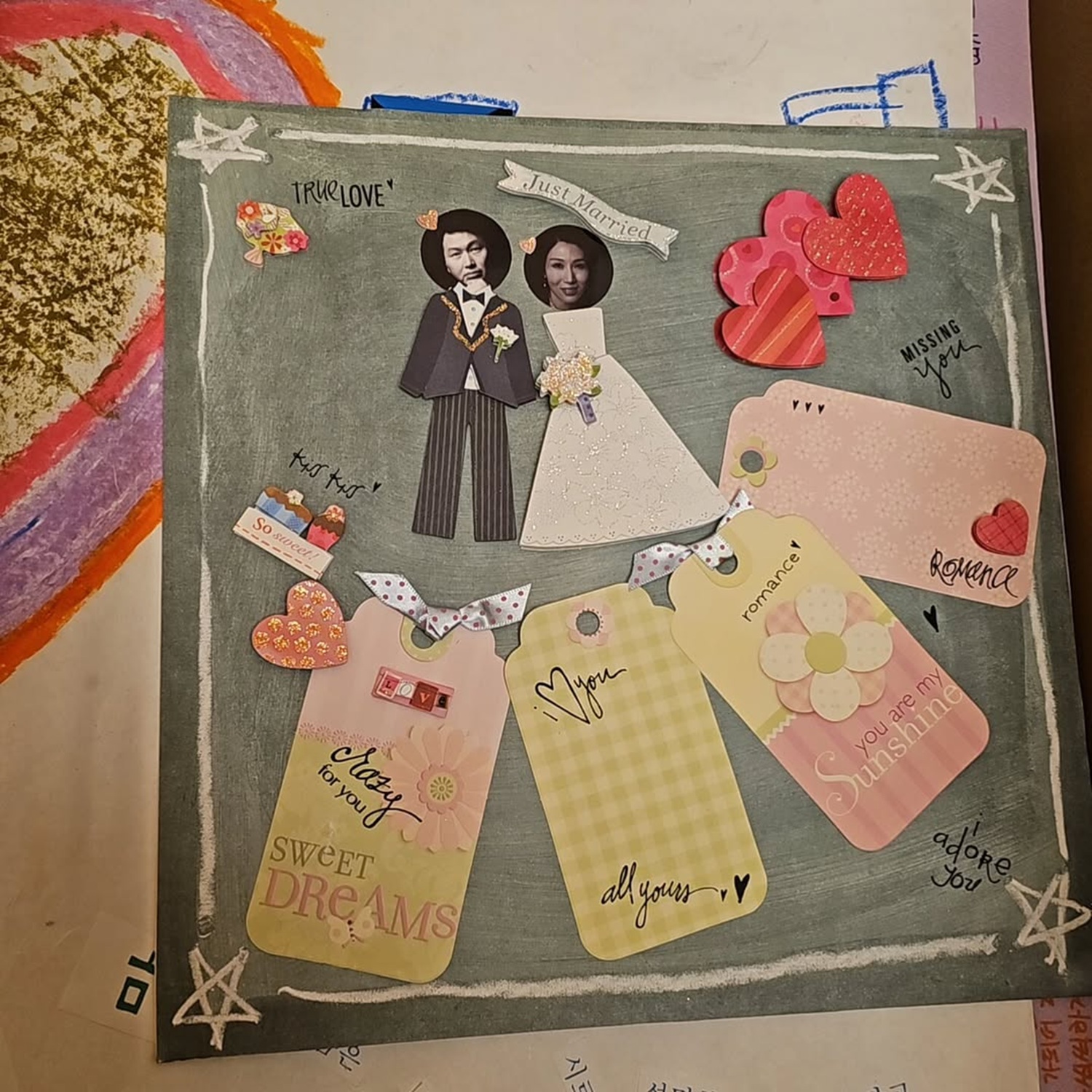 이와 함께 공개된 사진에는 1988년 결혼식 당시 입었던 것으로 보이는 웨딩드레스와 한복, 그리고 아이들이 직접 만든 것으로 보이는 도화지 사진이 포함되어 있다. 도화지에는 최태원 회장과 노 관장의 사진 위에 종이로 만든 턱시도와 드레스가 붙어 있고, ‘Happy Forever’라는 메시지와 함께 아이들의 손글씨가 가득 담겨 있어 보는 이들의 마음을 뭉클하게 한다.