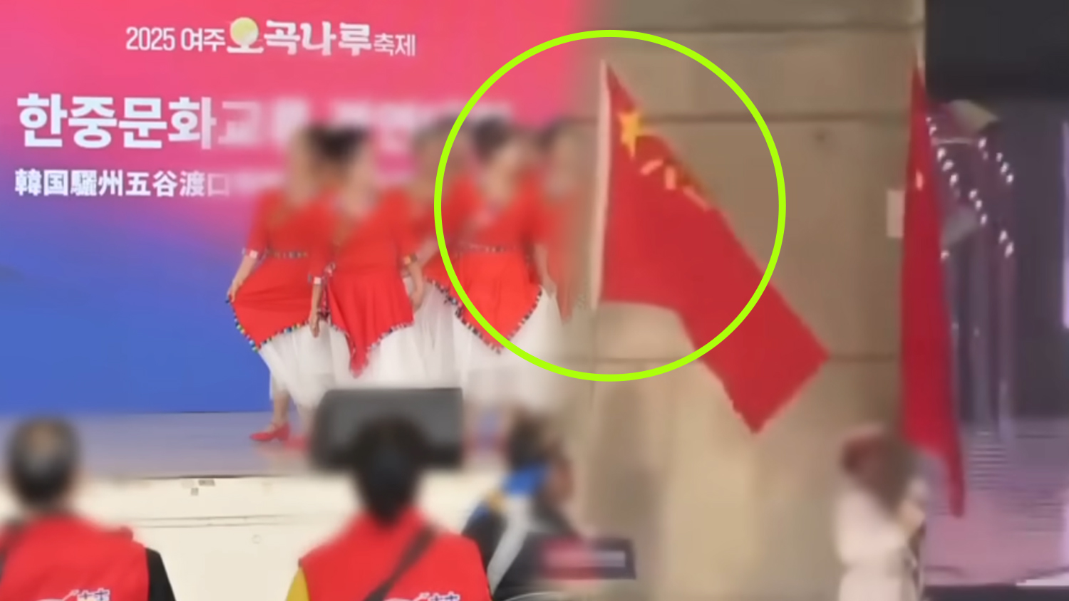 문제가 된 공연에는 제복을 입은 여성들이 절도 있게 발을 맞춰 행진했고, 무대 뒤 대형 화면에는 중국군의 행진 영상이 송출됐다. 특히 무대 왼쪽의 남성 출연진이 들고 있던 붉은 깃발이 파문을 키웠다. 이 깃발은 붉은 바탕에 노란색 별과 ‘팔일(八一)’ 한자가 적힌 중국 인민해방군의 깃발이었기 때문이다. 이를 본 시민들은 “지역 축제에서 중국군의 상징이 등장하는 것은 매우 부적절하다”, “단순한 문화 교류 차원을 넘어섰다”며 거센 비판을 쏟아냈다.