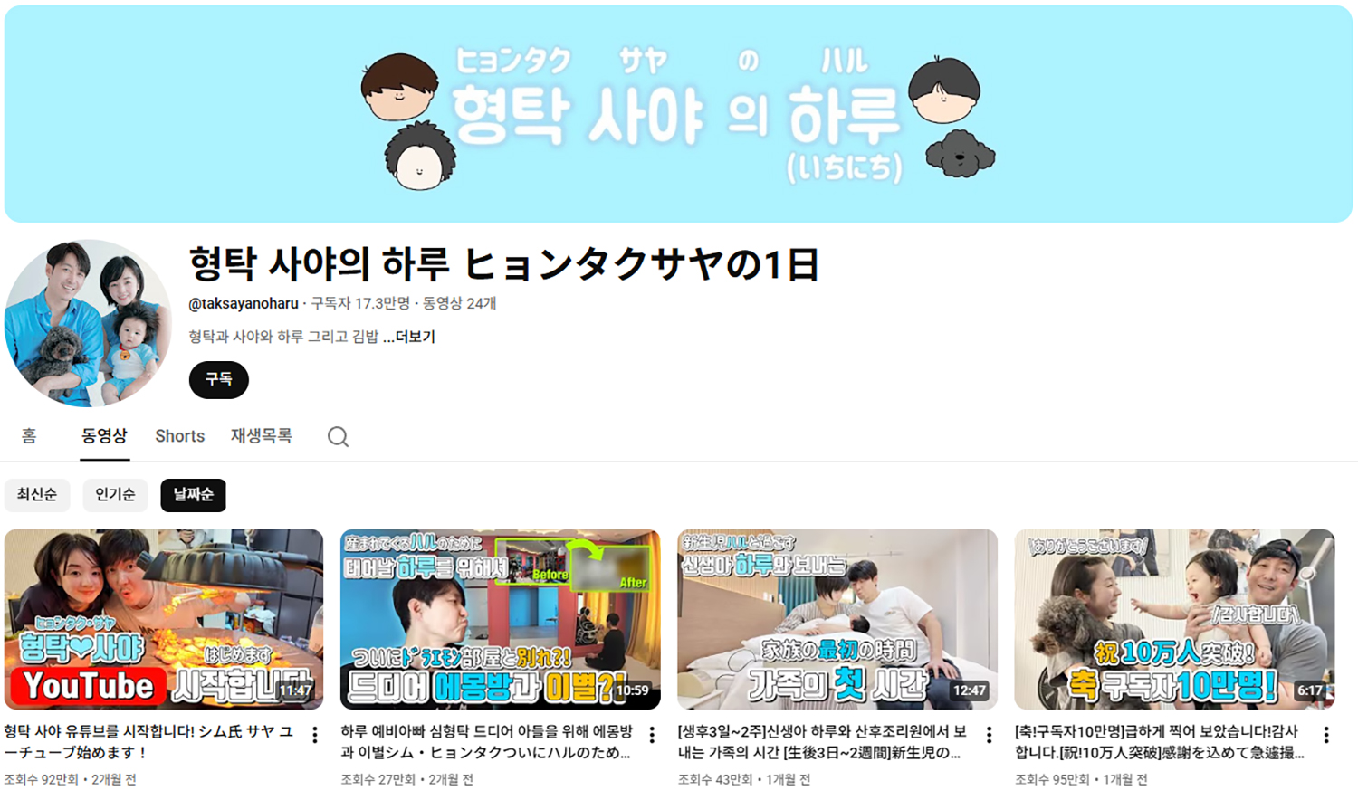 출처: 심형탁, 사야 부부가 운영하는 유튜브 페이지 화면 갈무리