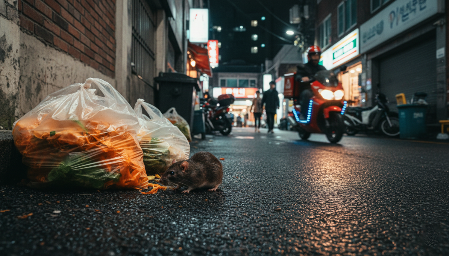 서울의 최근 쥐 출몰은 개체수 폭발이 아니라 환경 변화 가능성이 더 크다는 분석도 나온다. 이번 여름 유난히 잦았던 폭우로 지하 공간의 습도가 급격히 올라가면서 원래 지하에 숨어 살던 쥐들이 지상으로 이동했을 가능성이 있다. 코로나 이후 급증한 배달 문화 또한 영향을 줬다. 플라스틱 용기에 담긴 음식물 찌꺼기, 대충 씻어 내놓는 배달 쓰레기, 골목에 쌓이는 잔여물들이 쥐에게는 훌륭한 먹잇감이다. 사람의 동선 가까이에 ‘먹거리’가 늘어나자, 쥐도 자연스럽게 같은 공간으로 따라 올라온 셈이다.