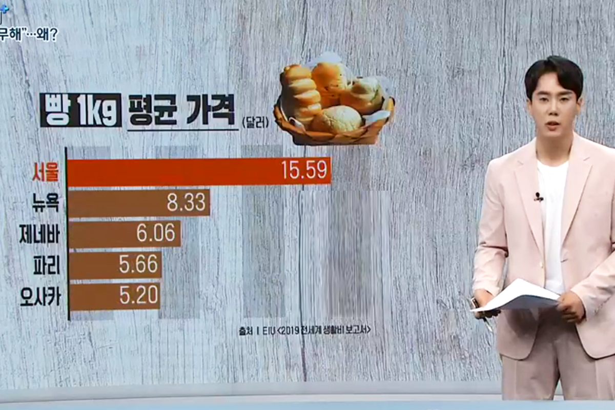 서울의 빵 가격은 물가가 높기로 알려진 코펜하겐보다도 3.7배 높았습니다.