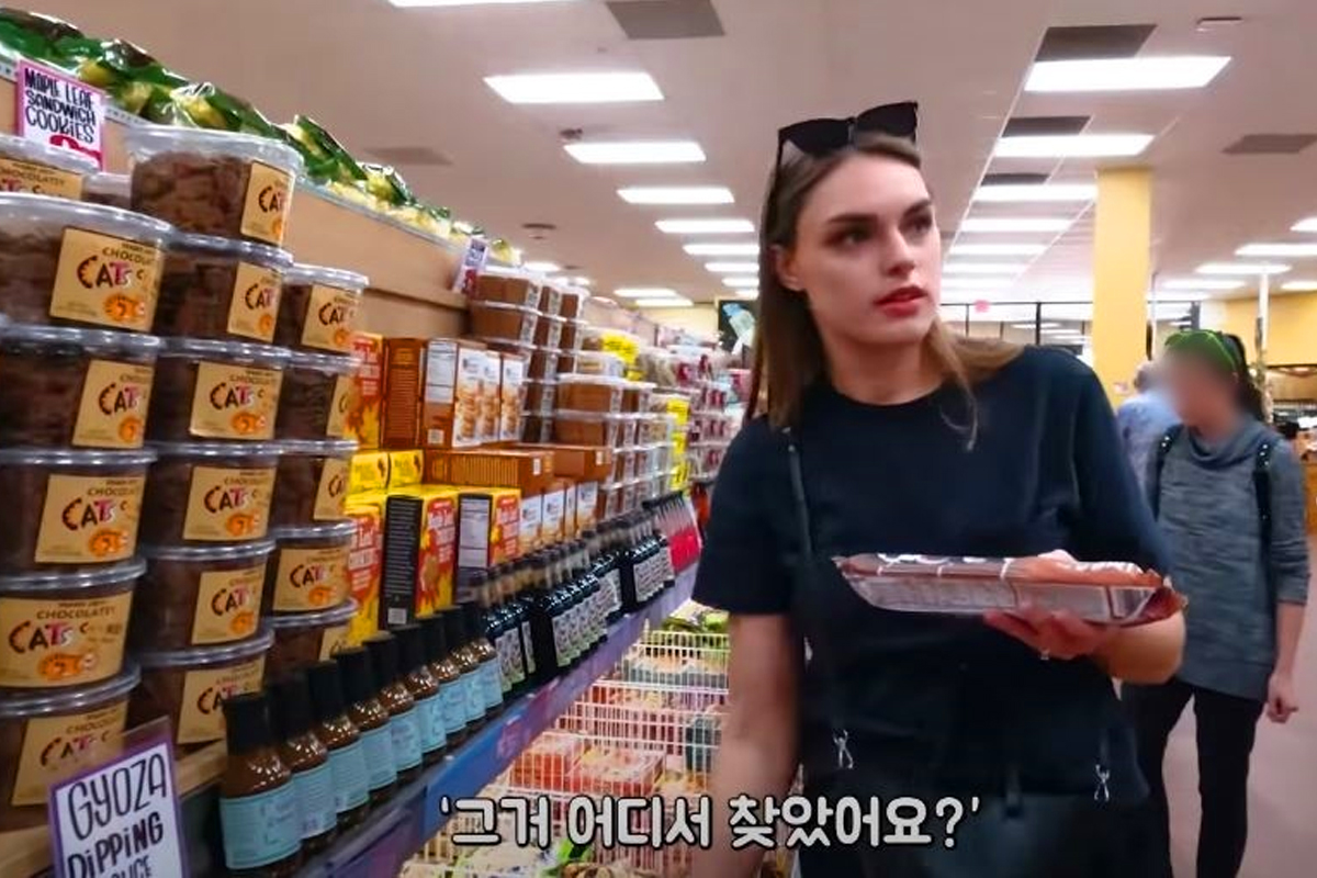 트레이더 조에 방문한 두 사람은 김밥을 들고 쇼핑하고 있었는데요.