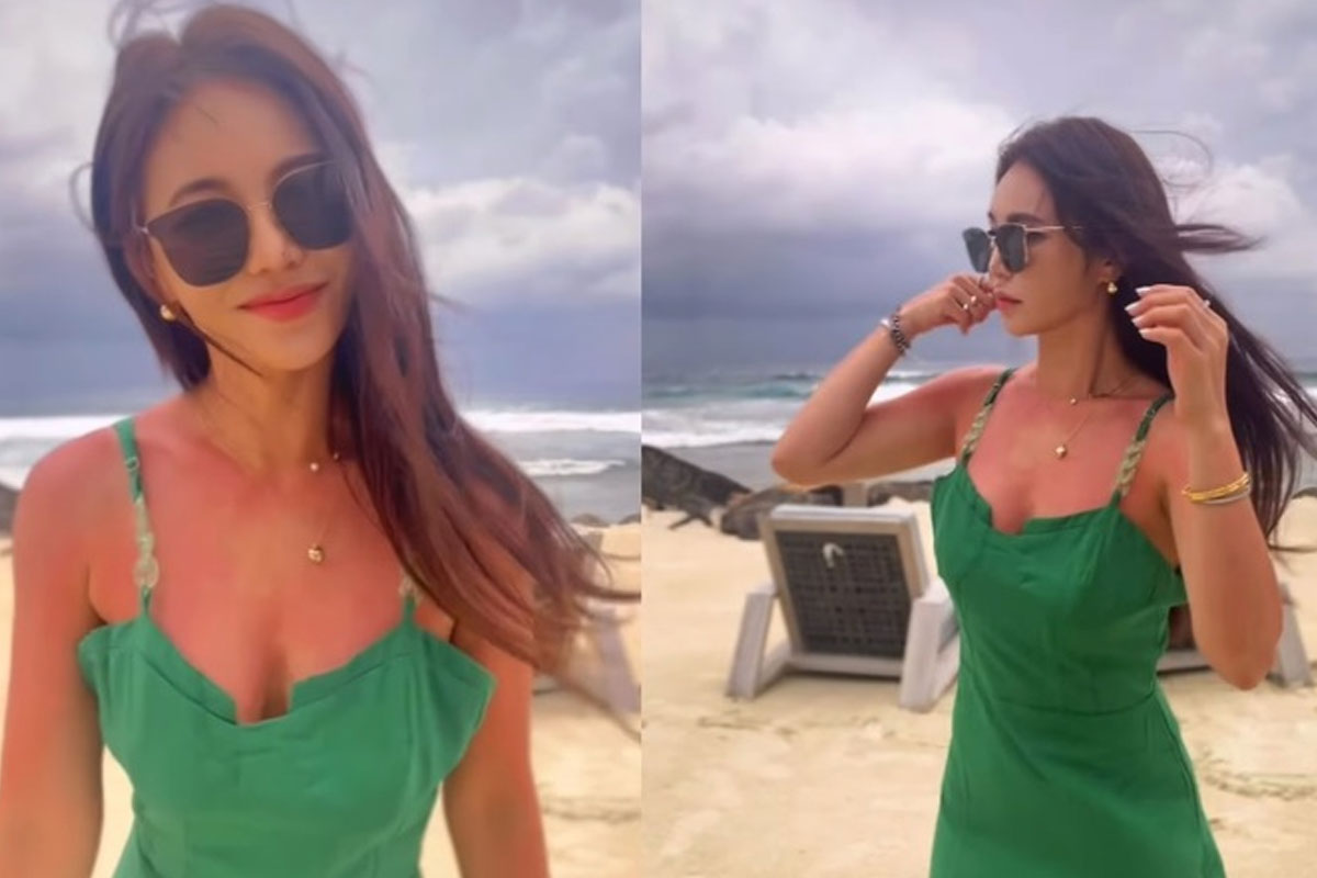 특히 해변을 배경으로 초록색 원피스, 선글라스로 멋을 낸 채 찍은 짧은 영상이 화제를 모으고 있다.