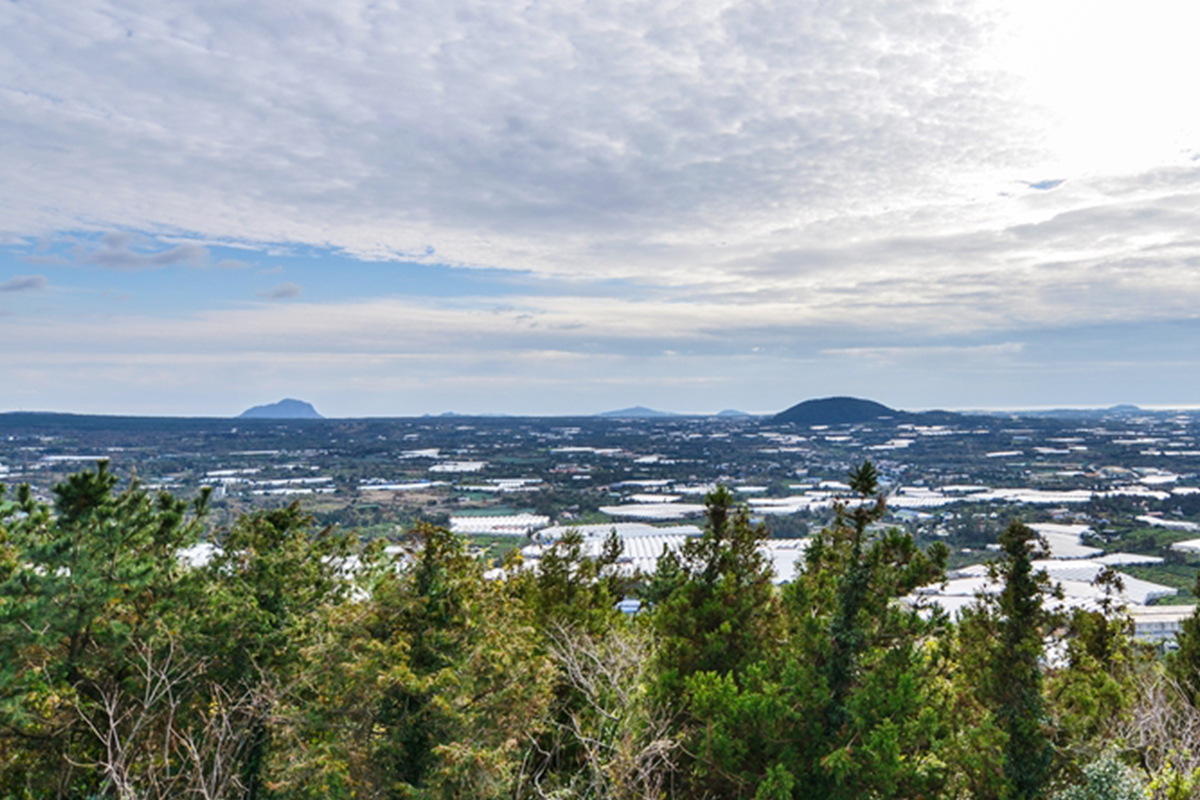 맑은 날이면 정상의 전망대에서 한라산을 포함해 총 12개의 산과 오름을 찾아볼 수 있다.
