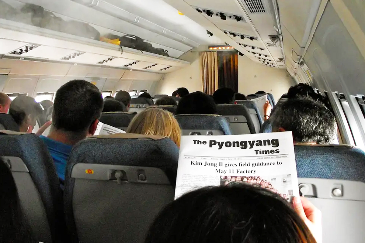 고려항공의 안전지침서는 영어와 한국어 모두 기재되어 있습니다. 비행기가 출발하기 전, 승무원들은 기내 탑승객들에게 북한 선전, 선동 내용을 실은 영문판 신문을 나눠줍니다.