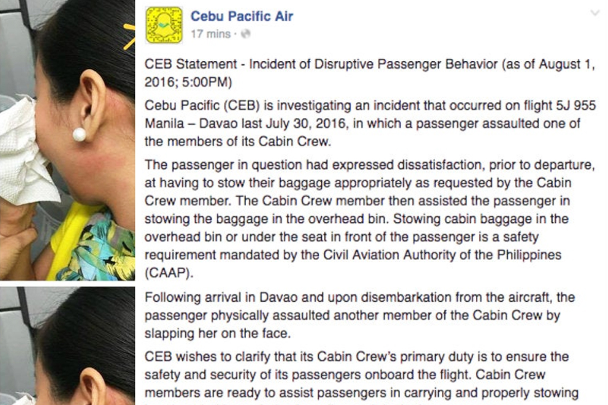 세부퍼시픽은 이 승객을 영구적으로 탑승객 리스트에서 제외했으며 소송 계획을 밝혔습니다.