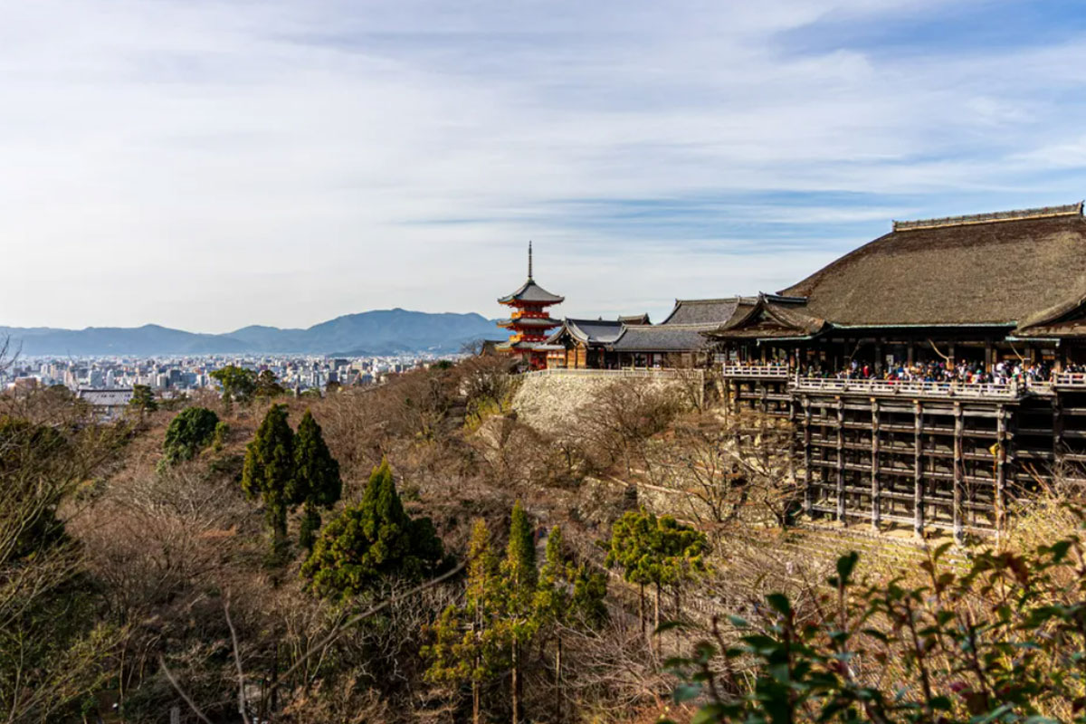 본당 앞마당에서는 교토 전경이 한눈에 보이며, 본당 측면에서는 본당과 교토 시내 전경이 조화롭게 이뤄져 감탄을 자아낸다.