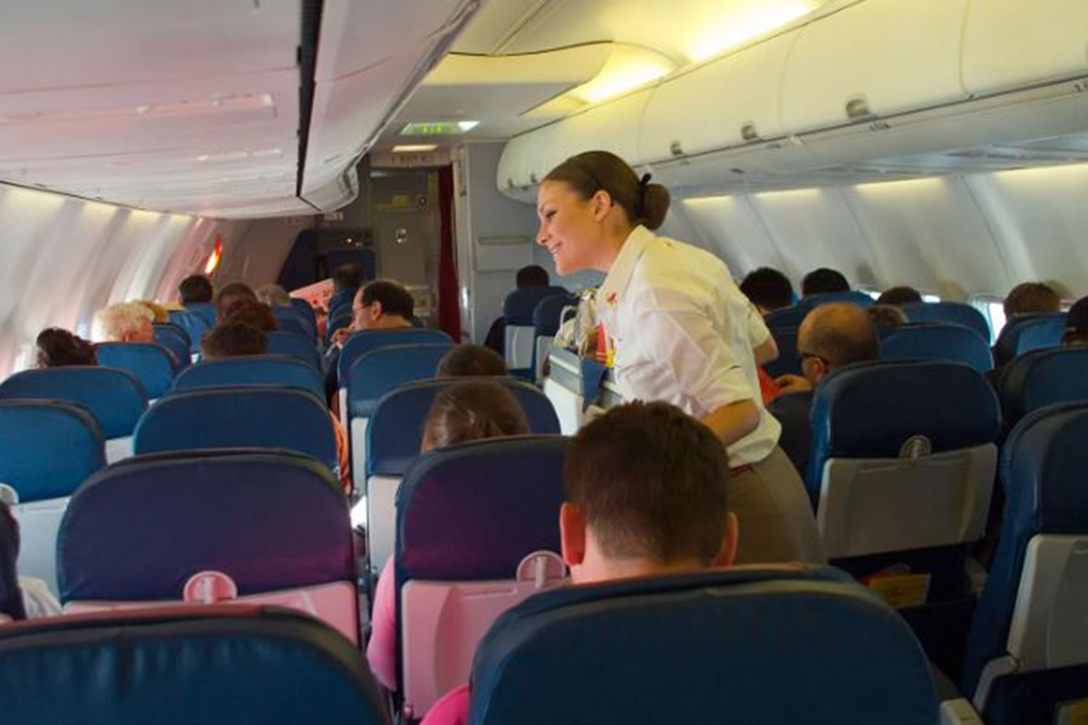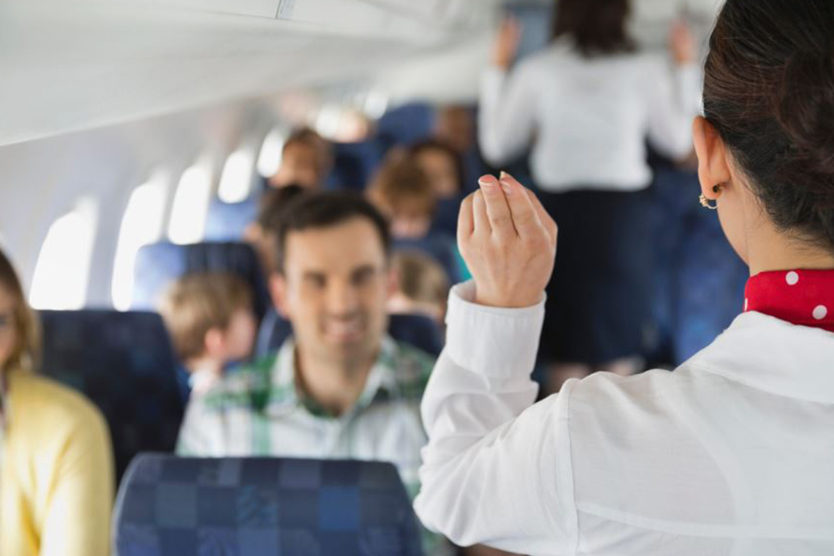 비행기 이착륙 시 승무원은 전 좌석을 돌아다니면서 승객에게 협조 사항을 요구한다.