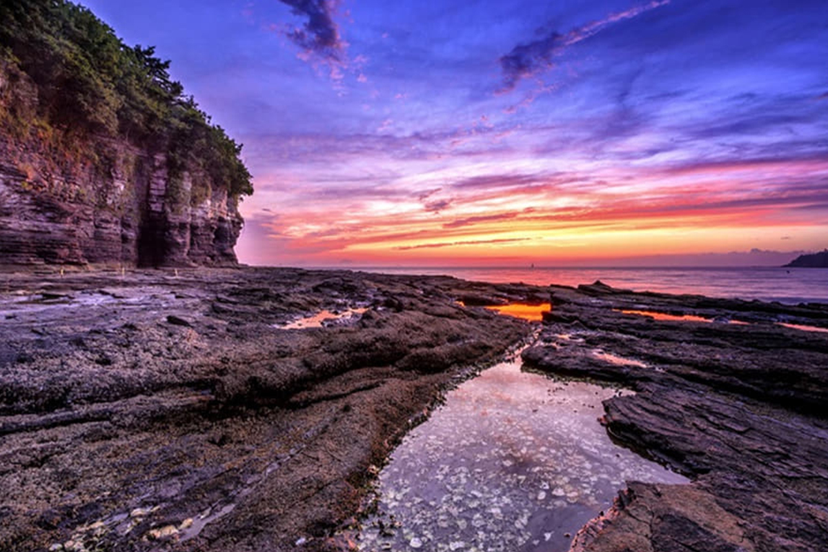 수천만 년 동안 층층이 쌓인 사암층 암벽이 파도에 깎여 이룬 기묘한 절벽을 볼 수 있는 게 특징인데요.