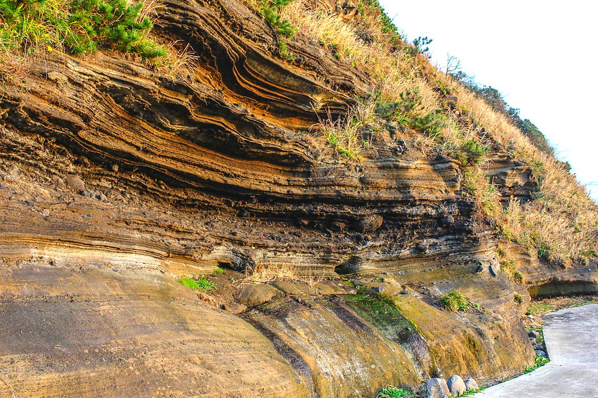 수월봉은 해안절벽을 따라 드러난 화산재 지층 속에 남겨진 다양한 화산 퇴적구조를 볼 수 있습니다.