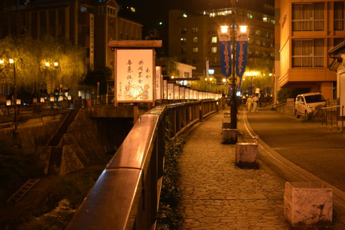 이곳에는 약 1300년의 역사를 지닌 온천마을로 시내를 흐르는 강을 따라 온천 료칸들이 자리 잡고 있습니다. 또한 족욕 시설도 이용할 수 있죠.