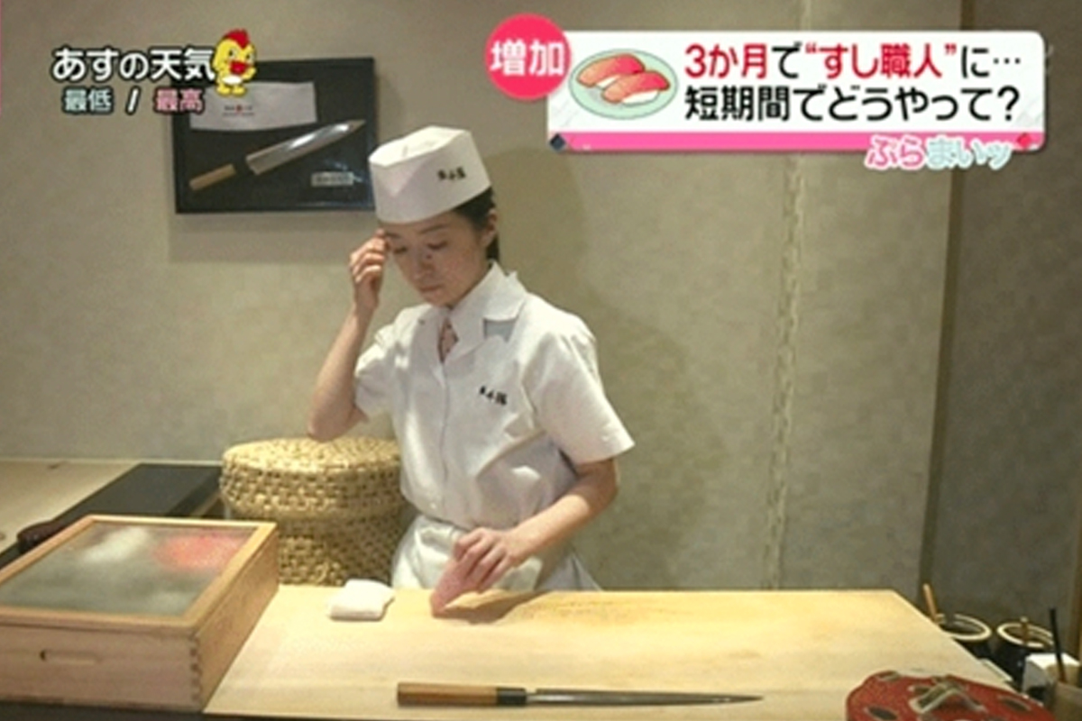초밥 장인을 육성하는 3개월 연수 과정을 소개하며 가장 좋은 실력을 지닌 여성 조리사의 초밥 제조 과정을 촬영했습니다.