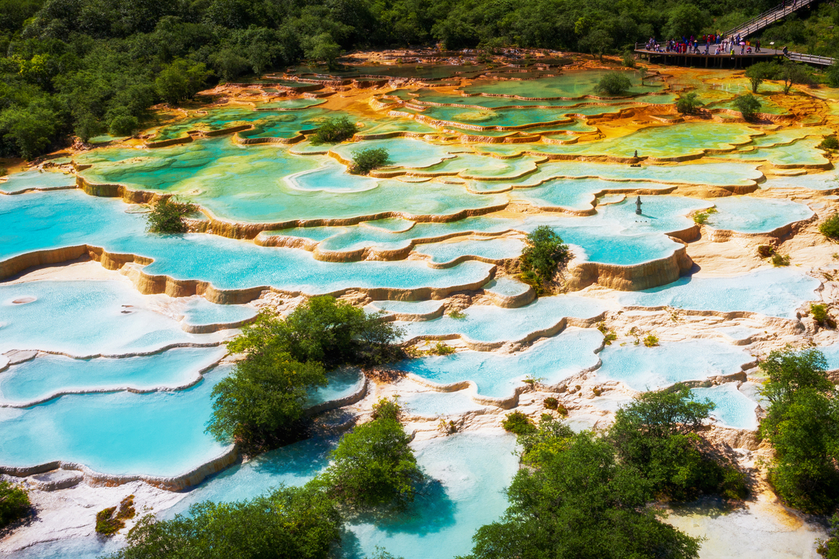특히 쓰촨성의 황룡은 언뜻 보면 터키의 파묵칼레를 연상시키는 비주얼로 많은 관광객의 발길을 끌어모으고 있습니다.