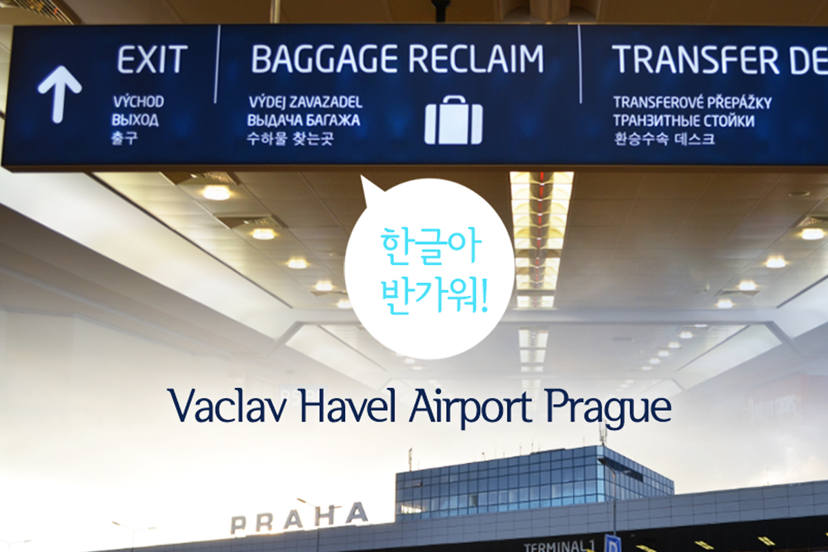 프라하 공항에서 한글을 볼 수 있다는 사실은 유명한데요. 지난 2013년 4월 대한항공이 체코 공항의 44% 지분을 인수한 후 프라하의 바츨라프 하벨 공항에 한국어 표지판이 새로 추가됐습니다.