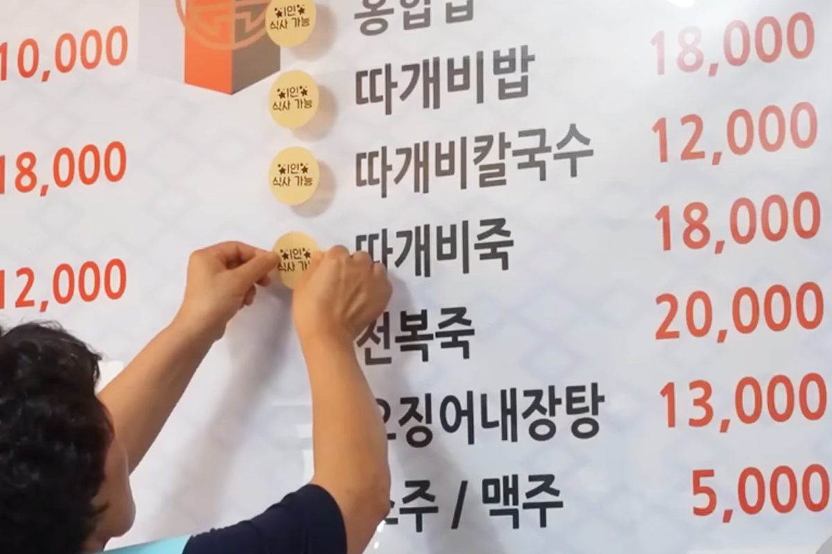 이후 울릉도의 음식점에는 메뉴판에 ‘1인 식사 가능’이라고 표시되어 있었죠.