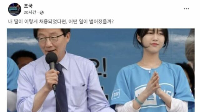 유승민 딸 유담의 교수 임용 논란에 조국이 보인 반응 “내 딸이라면…”조국 조국혁신당 대표가 유승민 전 국회의원의 딸 유담 씨의 인천대학교 교수 채용 논란과 관련하여 "내 딸이 이렇게 채용됐다면, 어떤 일이 벌어졌을까?"라는 메시지를 SNS에 남기며, 과거 자신의 딸 조민 씨의 입시 비리 논란과 비교하는 발언을 했다.