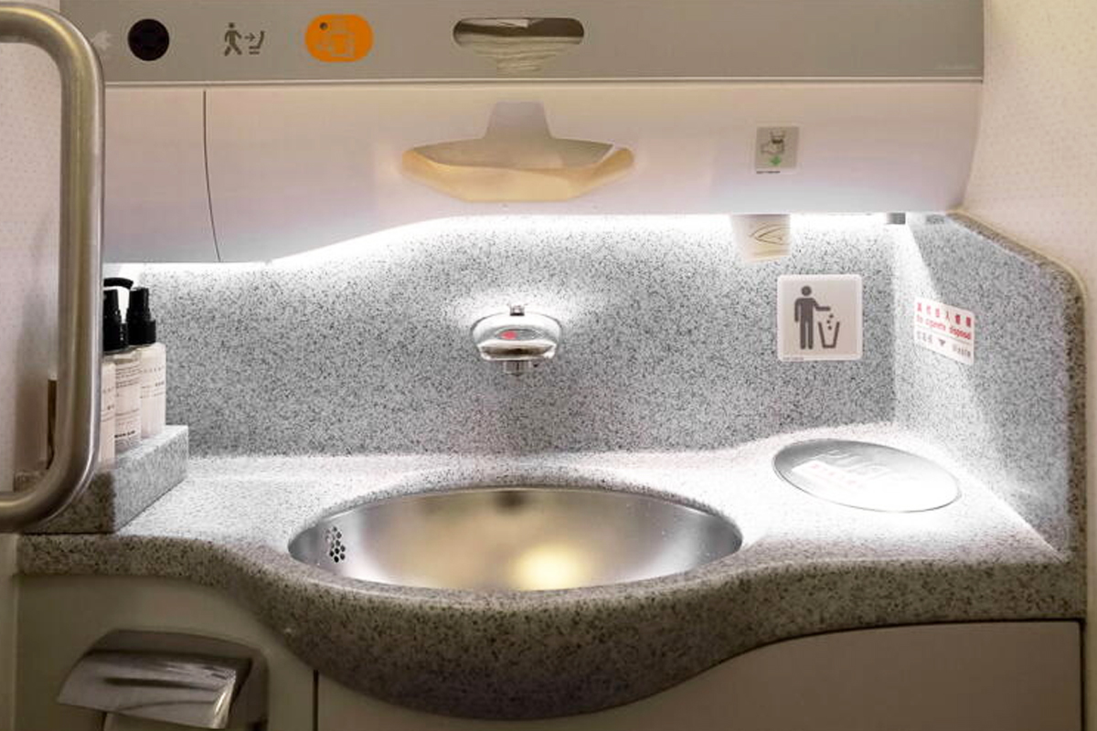 또한 기내 물탱크에서 나오는 물은 화장실 세면대에서도 사용되는데요.