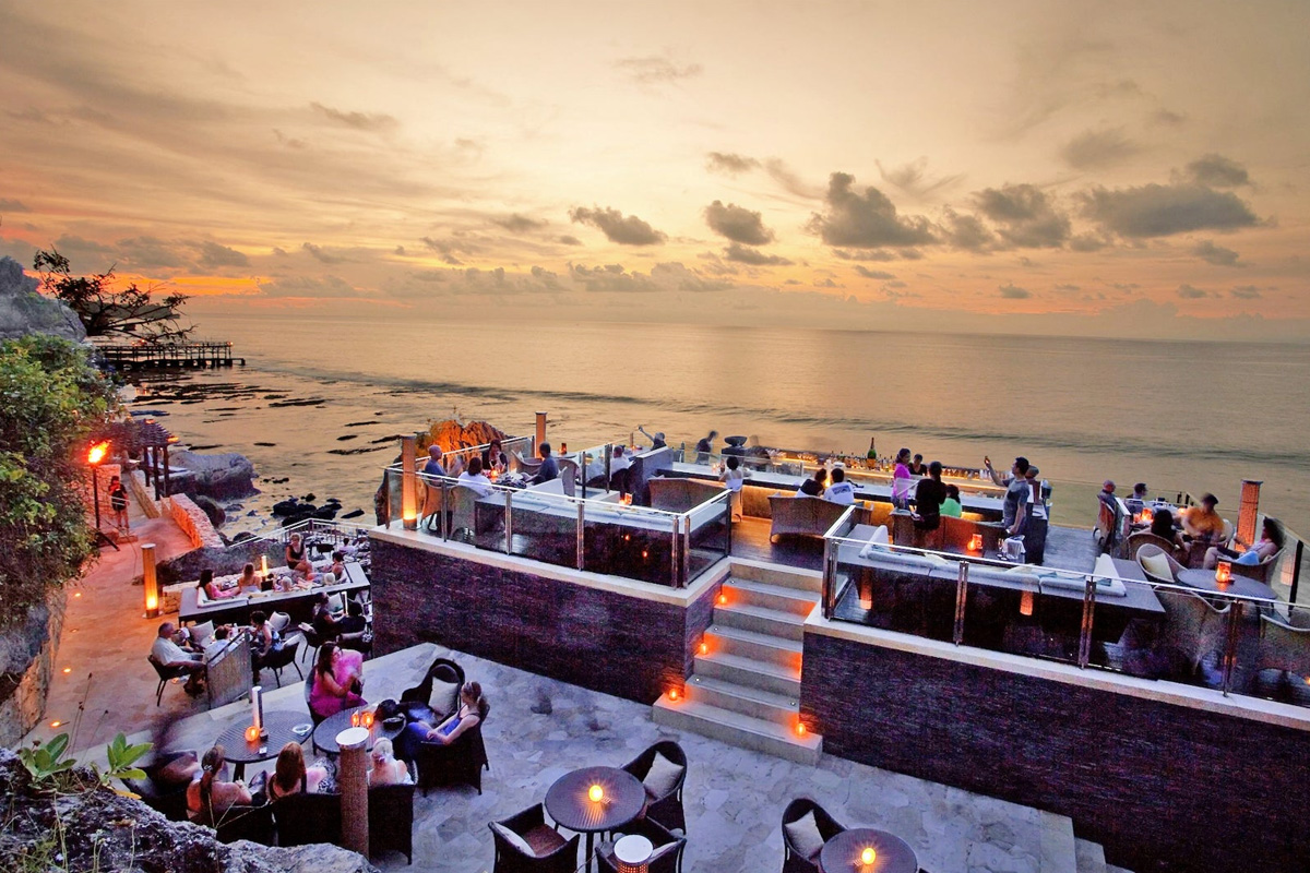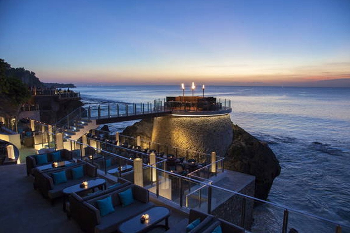 짐바란 베이에 우뚝 솟아있는 ‘14m 절벽 위’라는 특수한 자연형태와 바위의 특징을 잘 활용하고 있어, 이곳에서는 칵테일을 마시며 인도양 바다 파도와 함께 일몰을 감상할 수 있습니다.