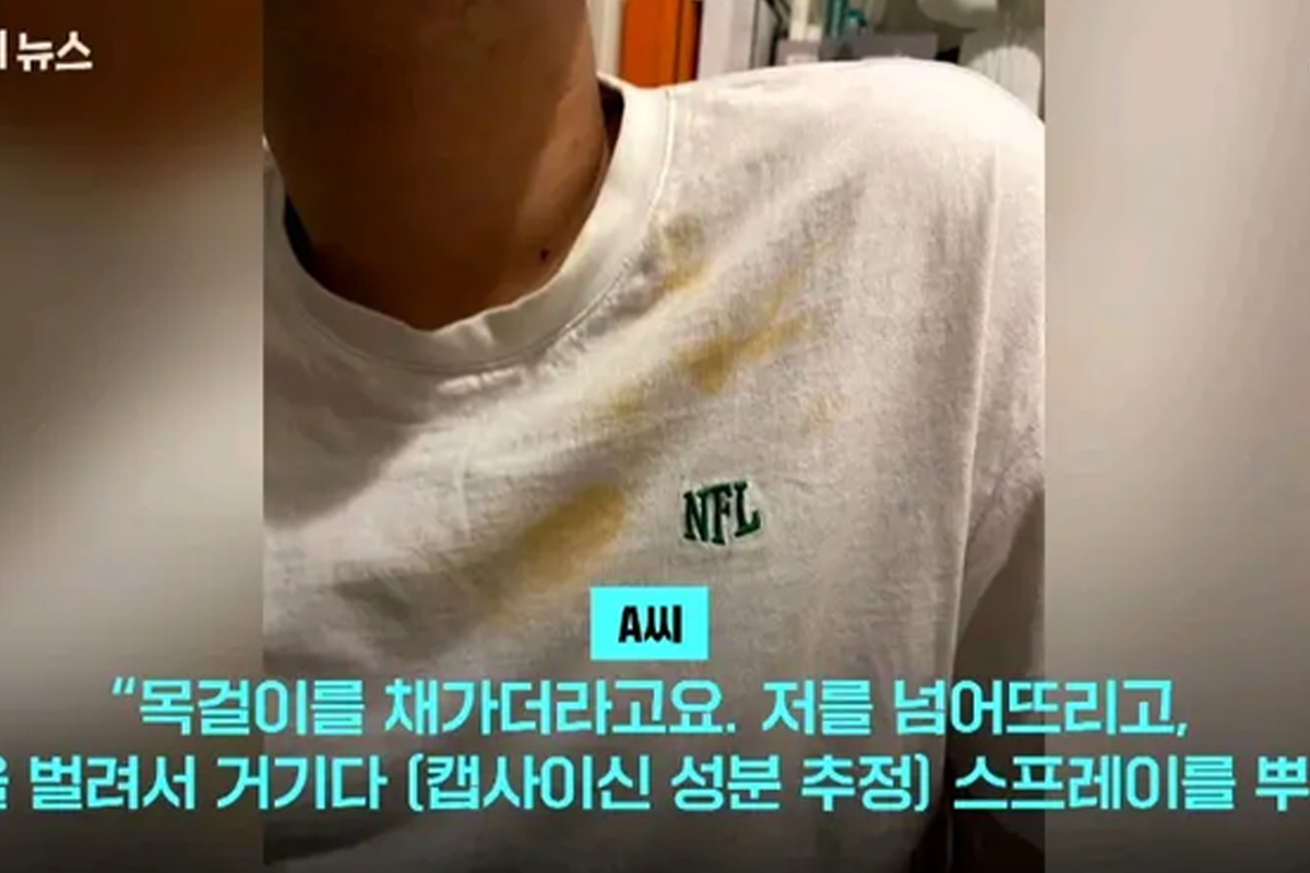 괴한은 캡사이신으로 추정되는 스프레이를 한국인 관광객에게 뿌린 것으로 추정됩니다.